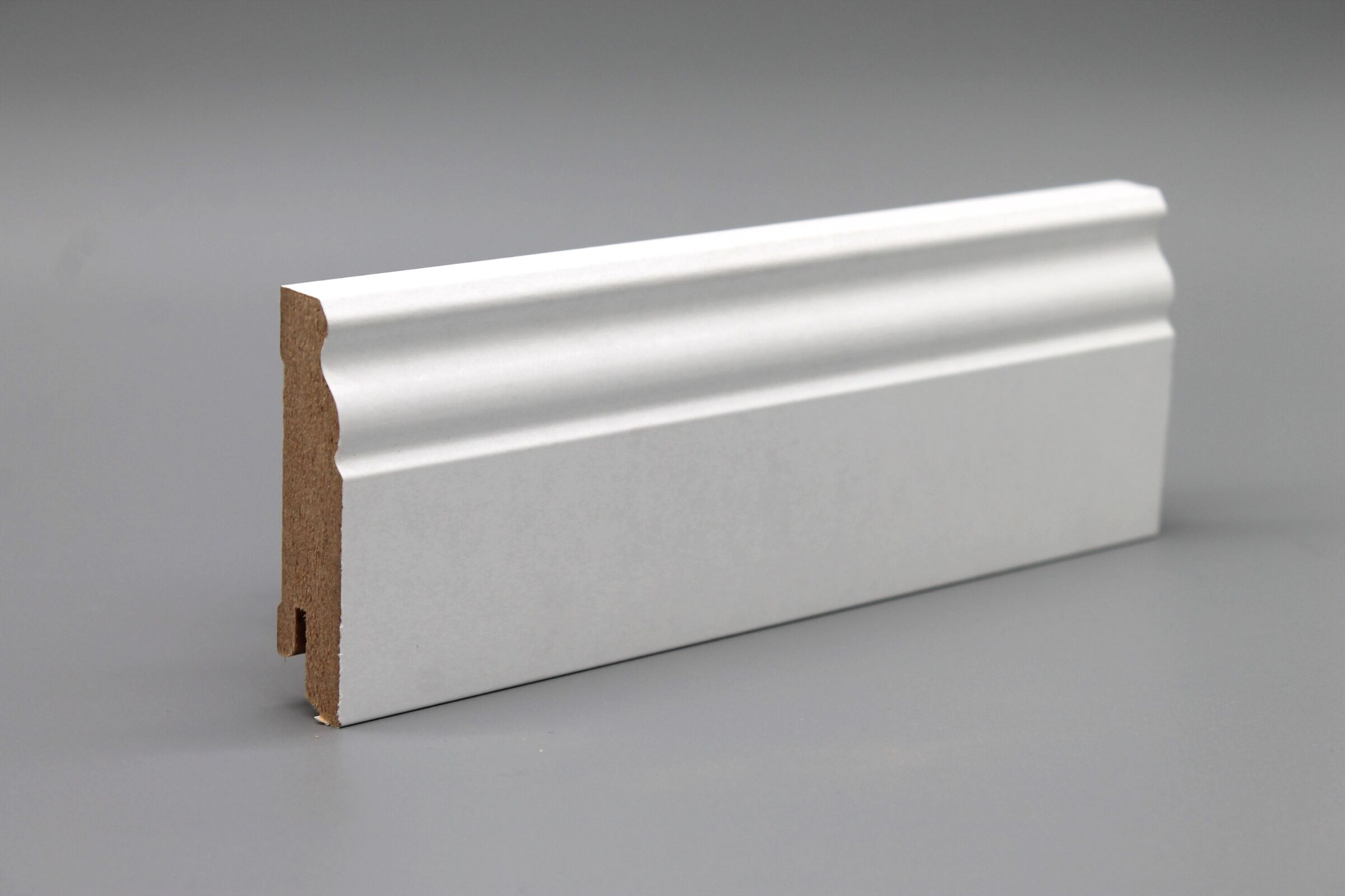 Mit ihrer markanten Profilleiste verleiht die Alt Berliner Sockelleiste jedem Raum einen eleganten, traditionellen Charakter. Sie ist die perfekte Wahl für Altbauwohnungen, klassische Interieurs oder moderne Wohnkonzepte mit historischem Flair. Die feine Verarbeitung unterstreicht die hohe Qualität und sorgt für ein stilvolles Finish an jeder Wand.